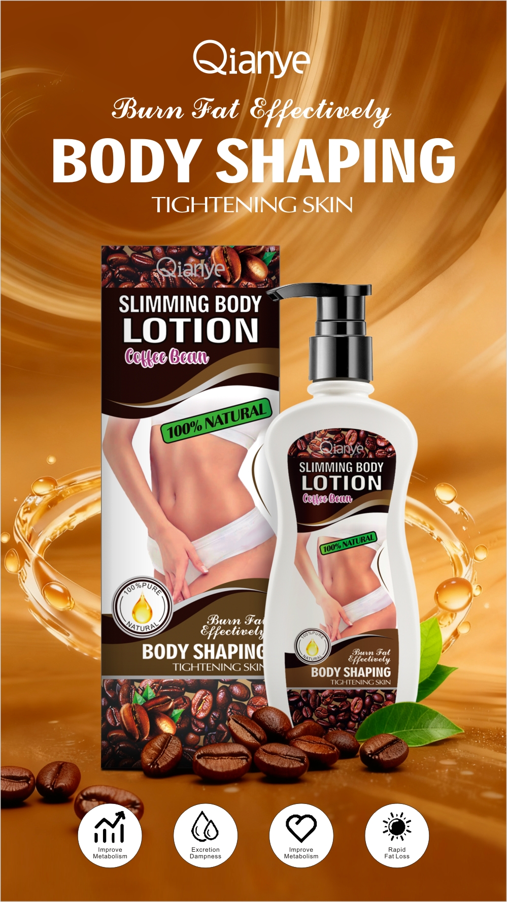 Take an appropriate amountandapply to the waist,abdomen/thigh and arm,massage incircles for 5-10 minutes until hot.