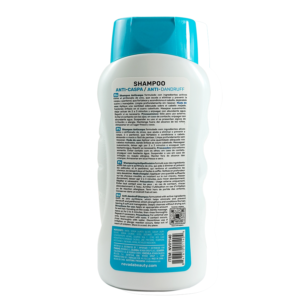 Anti-dandruff Shampoo formulated with active ingredients such as zinc pyrithione, which helps eliminate and prevent dandruff, and panthenol, which strengthens and conditions the halr, leaving it soft and manageable. Deeply cleanses without drying out.