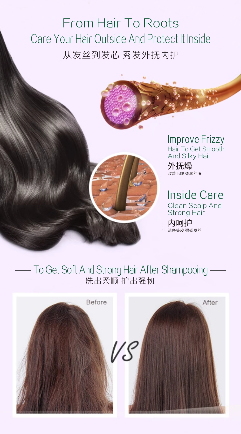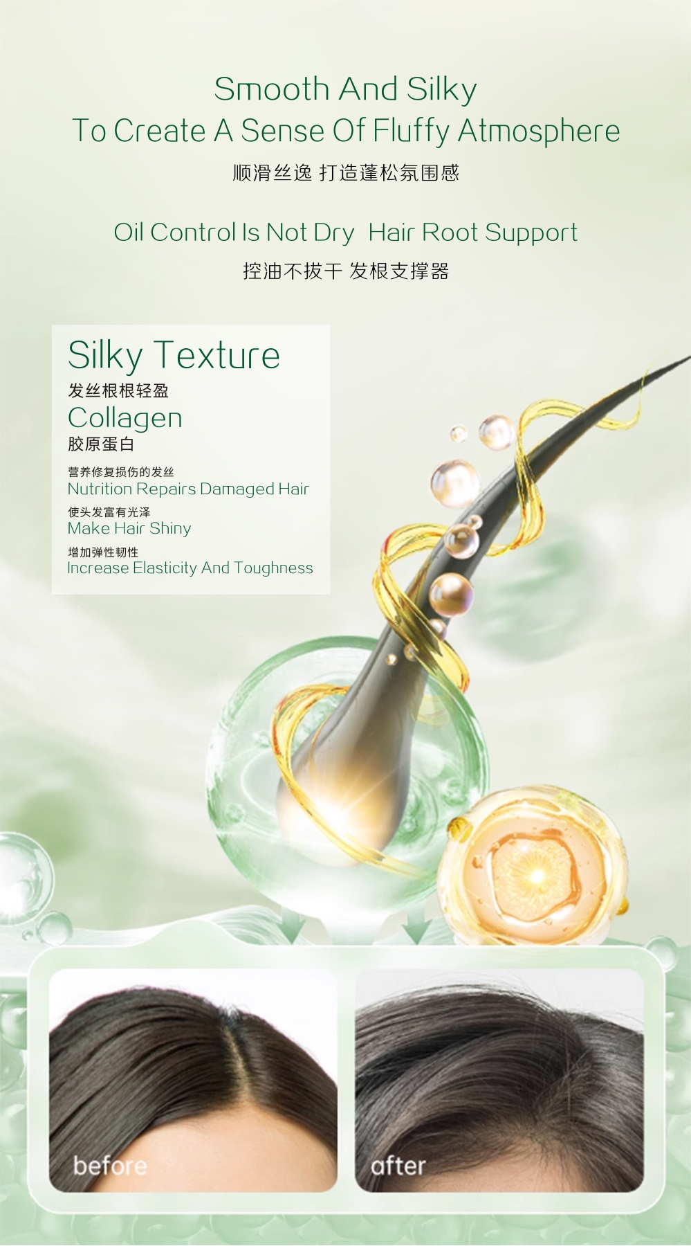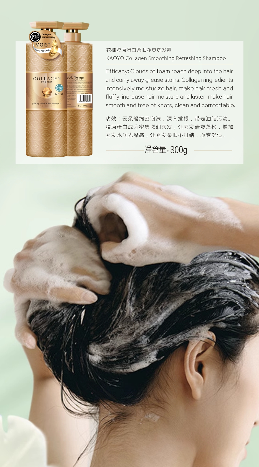 Clouds of foam reach deep into the hair and carry away grease stains, Collagen ingredients intensively moisturize hai,make hair fresh and fluffy, increase hair moisture and luster, make hair smooth and free of knots, clean and comfortable.