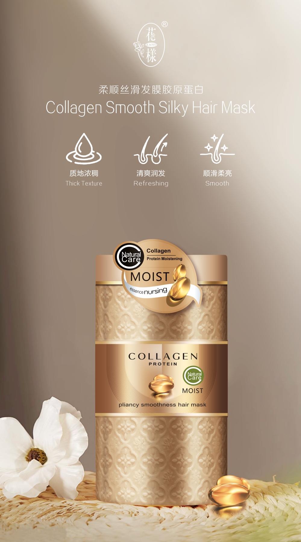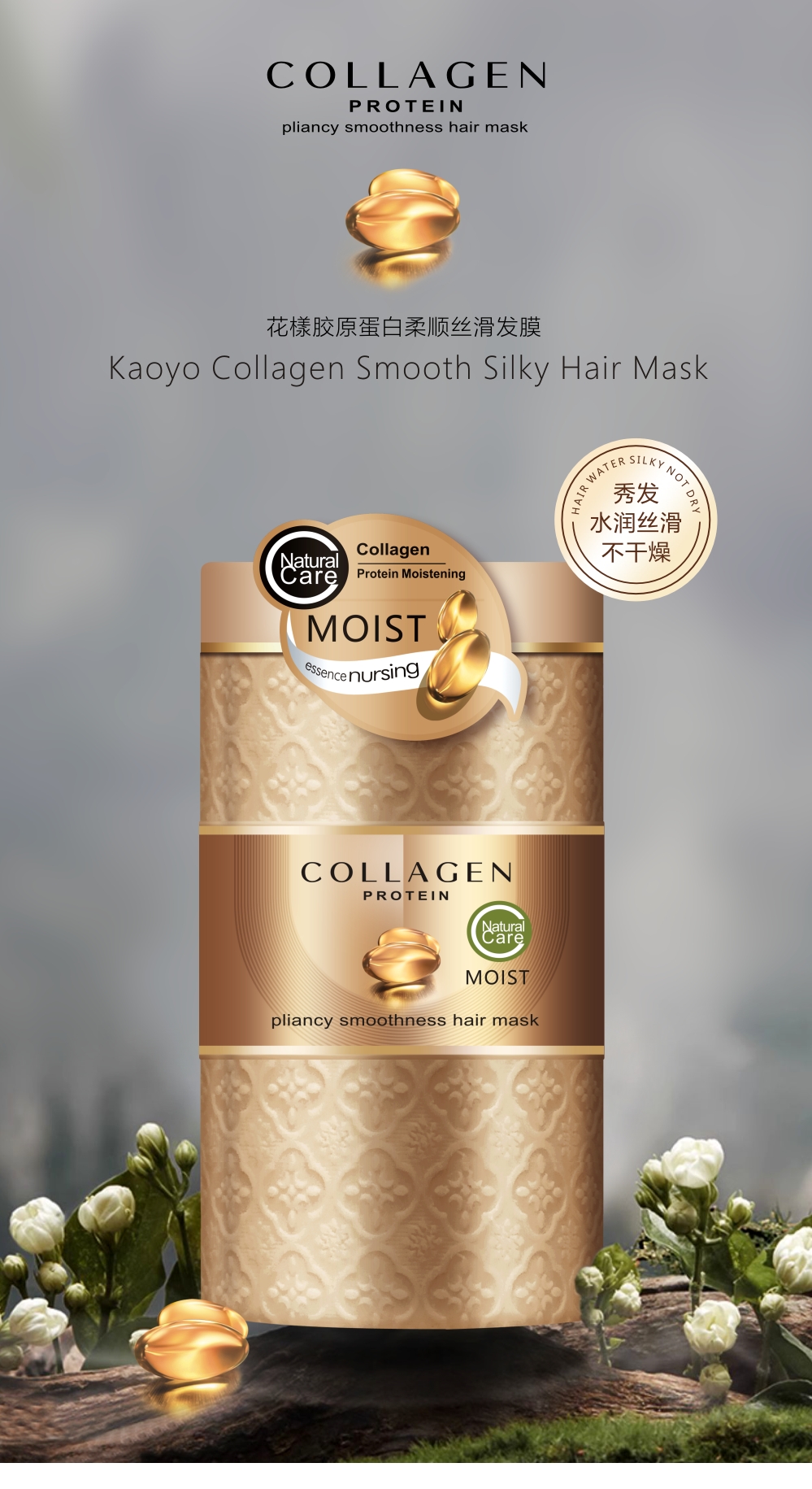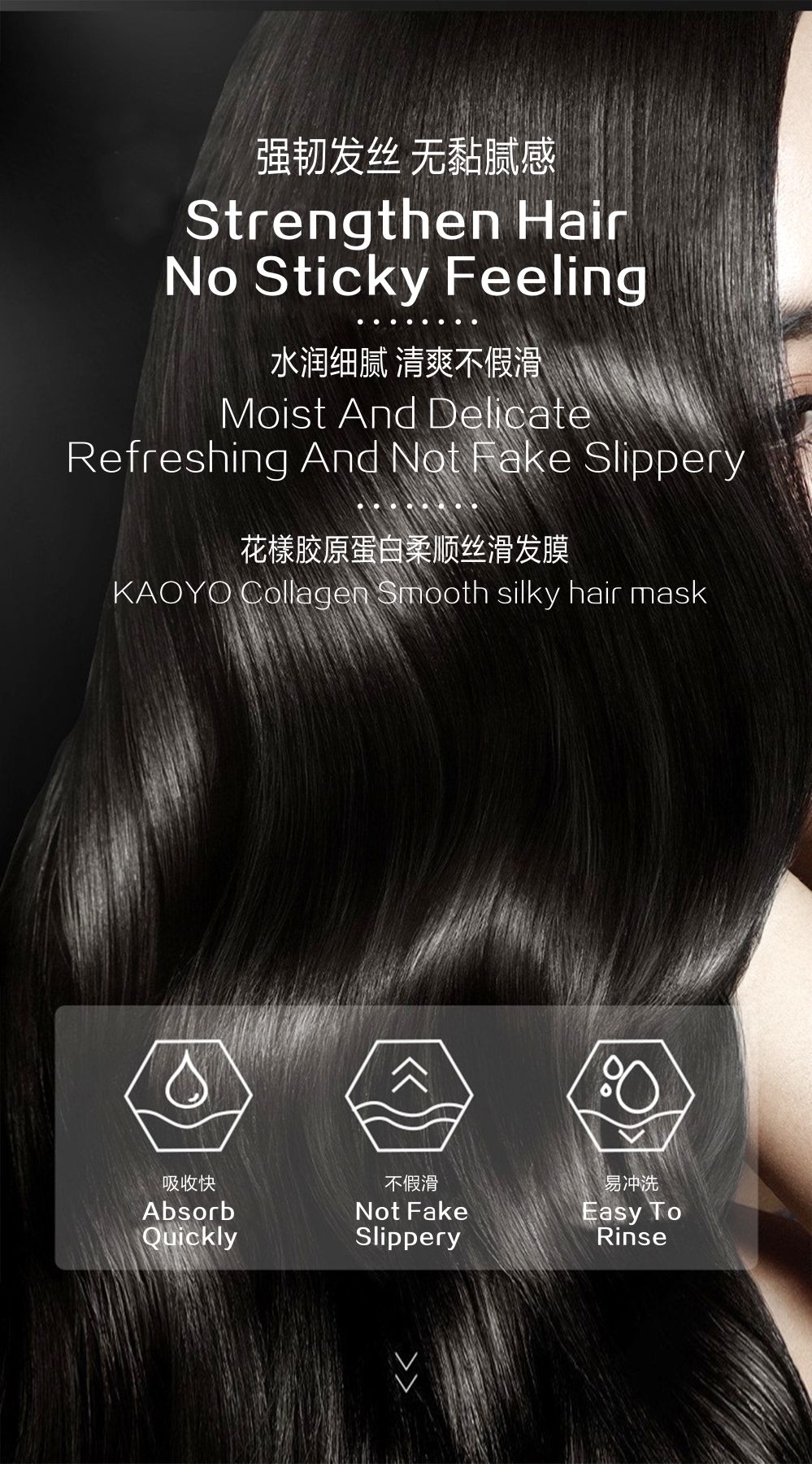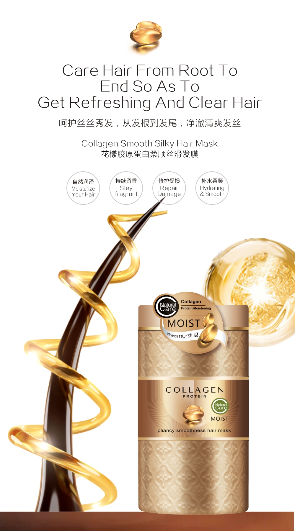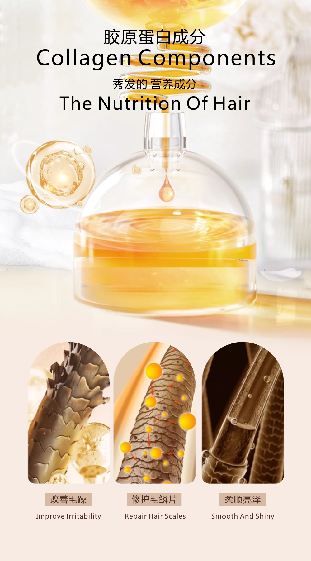 smooth formula to improve frizz, Collagen hair care ingredients, moisturize hairscales, soften hair, let hair natural beauty, flowing