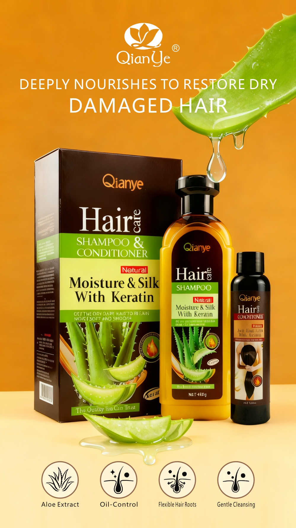 Qianye aloe vera shampoo set(420g shampoo + 100ml conditioner)