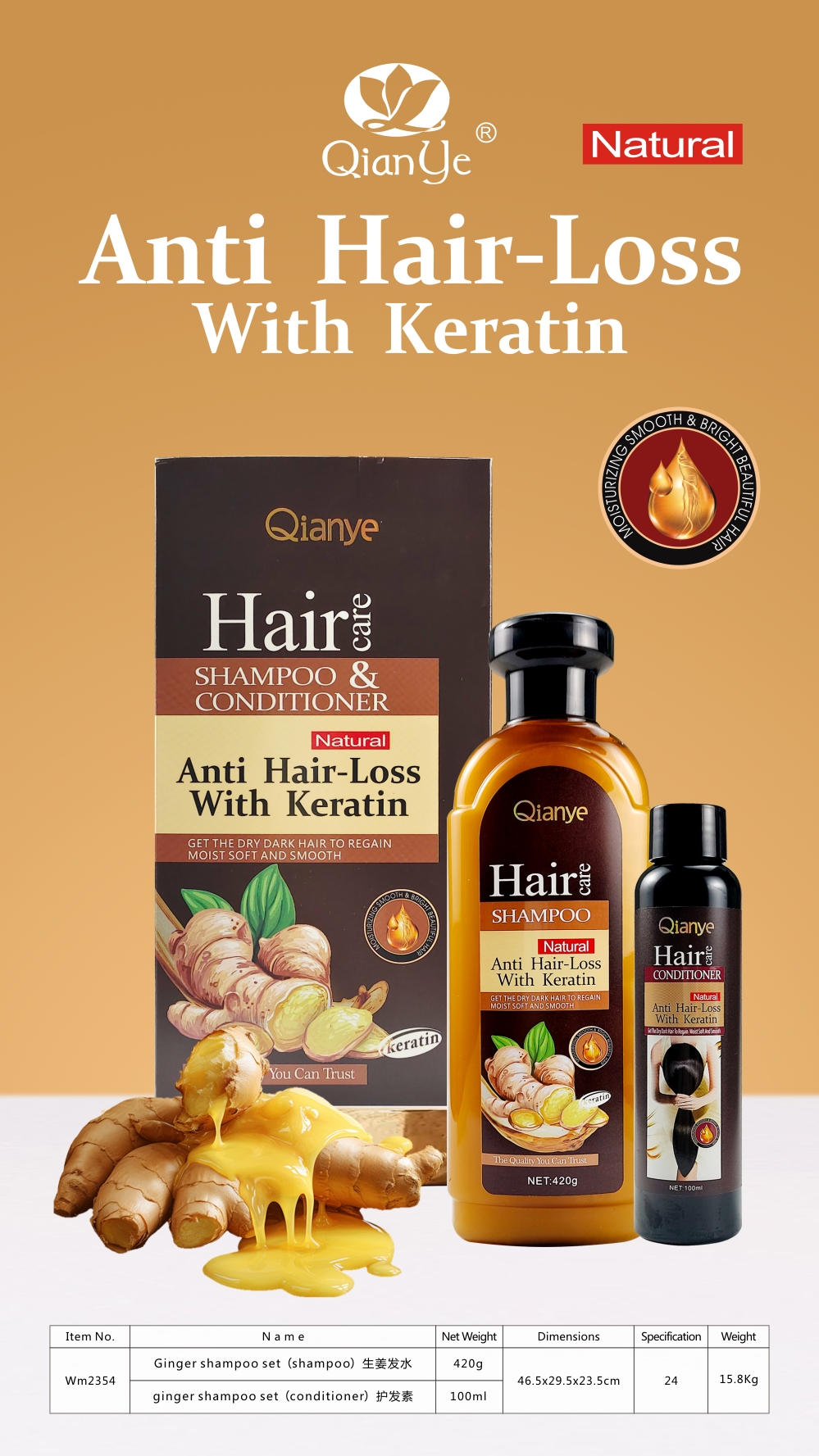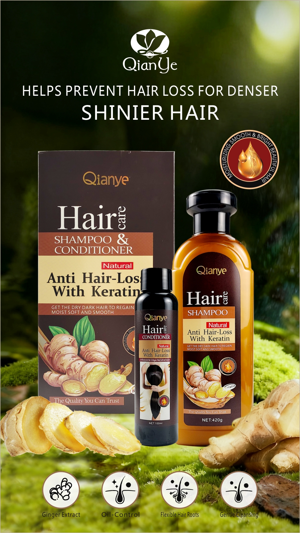 Qianye ginger shampoo set(420g shampoo + 100ml conditioner)