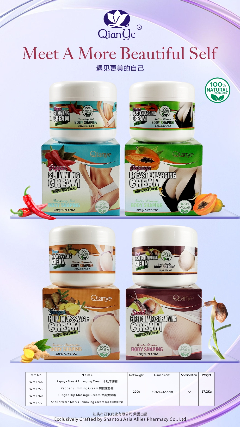 Take an appropriate amount of cream, warm it up by rubbing betweenyour hands, and gently massage the areas with stretch marks (abdomen, thighsbuttocks) until fully absorbed.